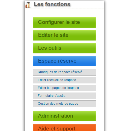 • Création de rubriques pour classer les pages contenues dans l'espace réservé.
